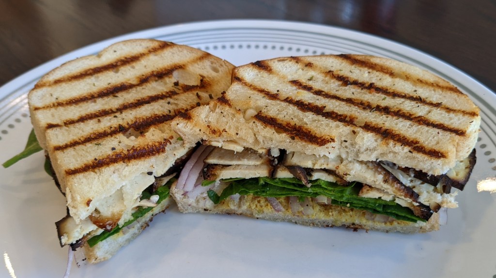 FWIW, I used mesquite and pecan wood. Incredible flavor. Never one to waste good food, I whipped up this dank sandwich for lunch: sourdough bread, vegan mayonnaise, spicy mustard, thinly sliced smoked tofu, baby spinach, red onion, with some salt and pepper. Then for good measure I put it on my cast iron grill for a couple of minutes to warm it up and get these cool grill marks. Tasty success!