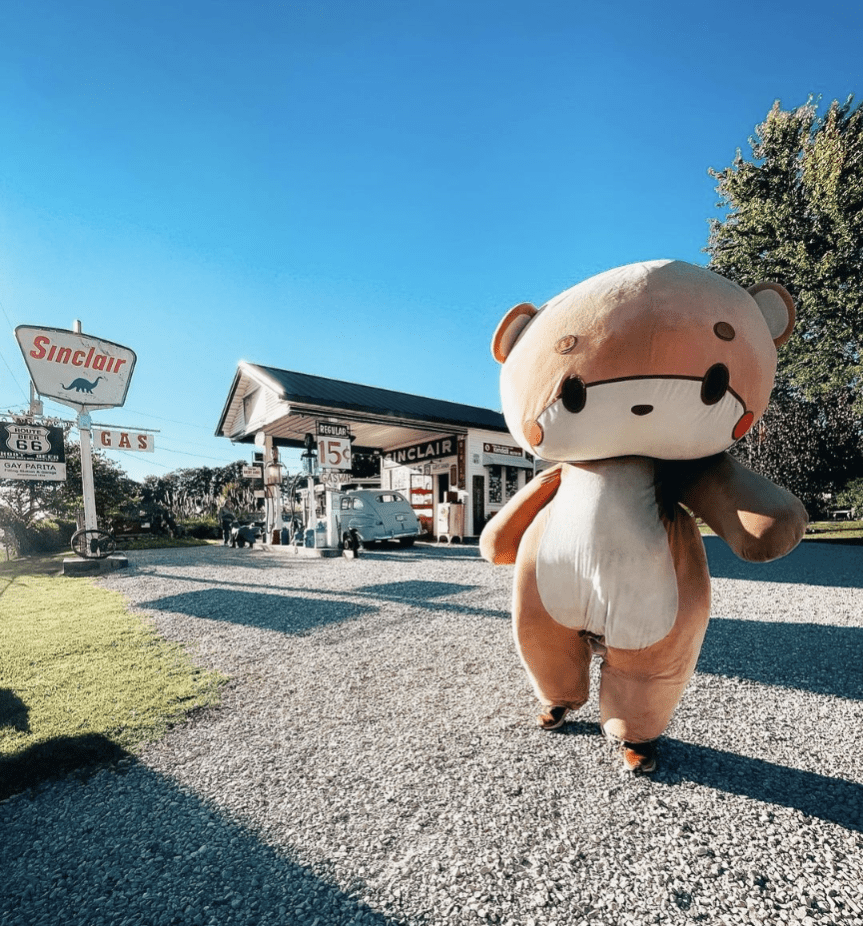 I started following Bearsun (aka Jessy Larios) and his journey last spring in April of 2021. He was on his way from LA to San Francisco, walking in a custom made ‘Bearsun’ suit. It looked awesome from a visual standpoint, and it was a creation all his own. I was intrigued by his ‘costume’, his adventure and his earnest sense of being. I liked that he kept ‘in character’ in all of his posts – and that he was raising money for non-profit groups. All good stuff.