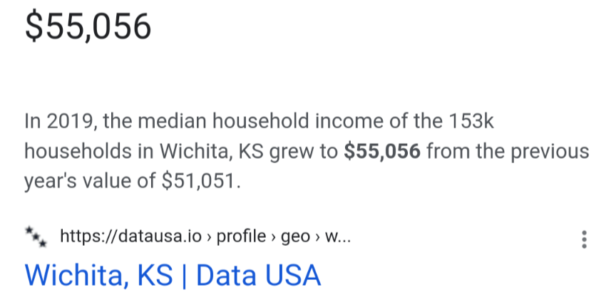 As you can see in the picture below, given income rising at a similar pace between the last data provided in 2019 and 2022 – it’s reasonable to assume that the average income in Wichita is likely now around $67,000 a year – more than what you would need to buy this home.
