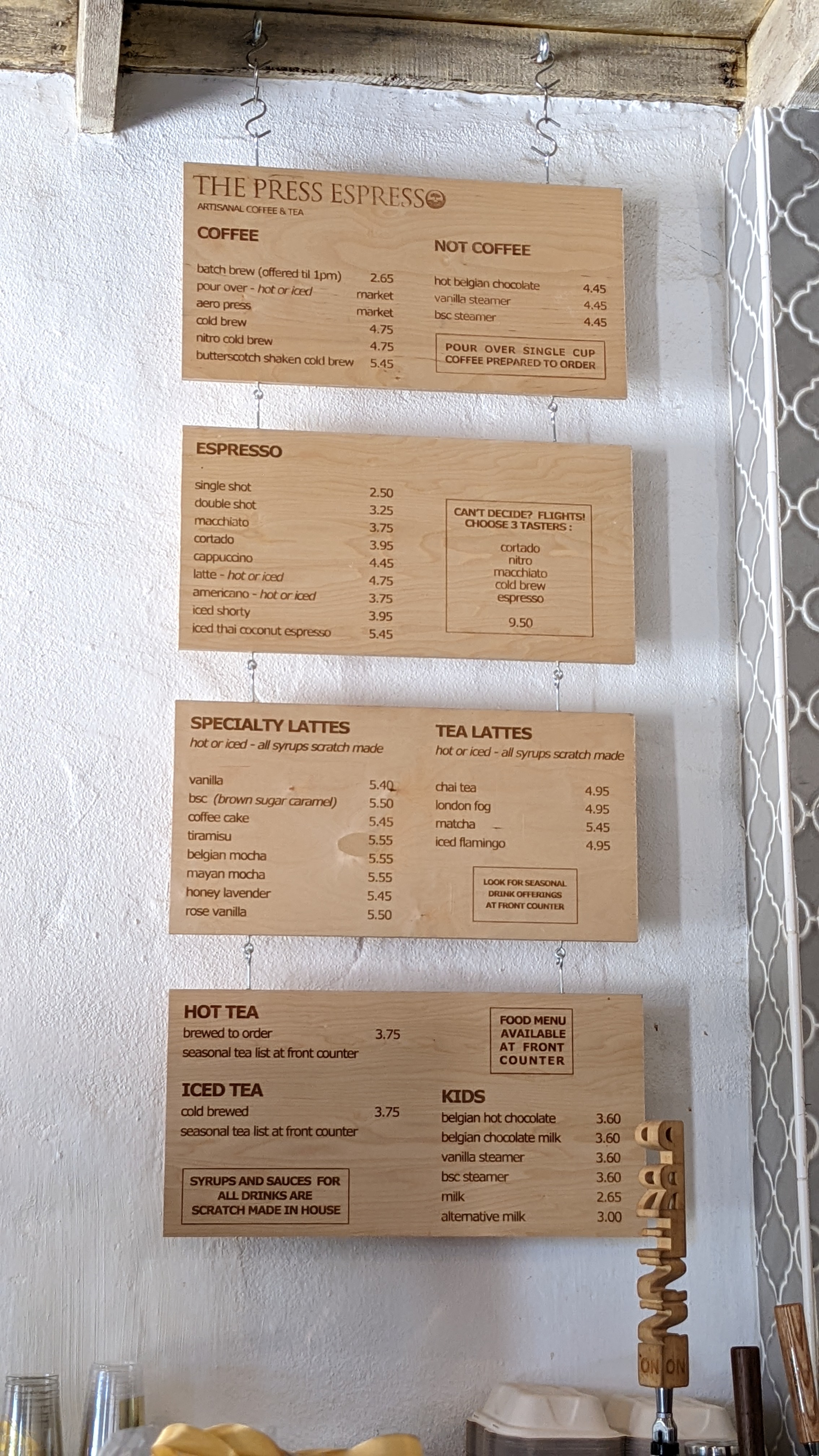 In an adjacent historic building is The Press Espresso (https://instagram.com/thepressespresso). They serve up some of the best coffee you can find. Their coffee beans are small batch roasted. I buy their beans so that I can brew the best drip coffee at home. I also regularly get their oatmilk latte, pictured below.