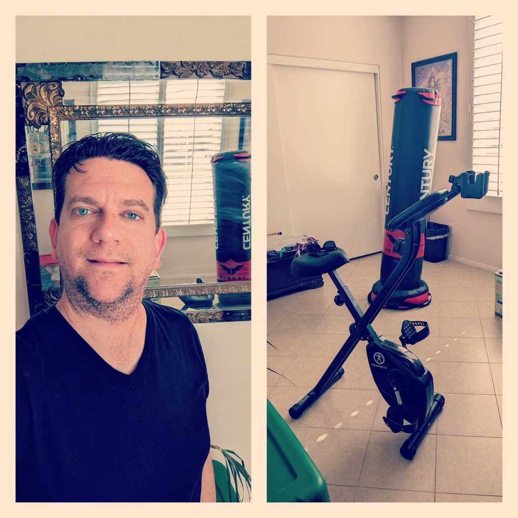 20 min on the bike, 10 min on the bag. Arms feel like jello.