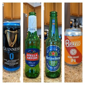 In my continuing series of reviews on non-alcoholic beers we have four new contenders: The Guinness 0, Stella Artois liberté, Heineken 0.0 and Bravus blood orange IPA.