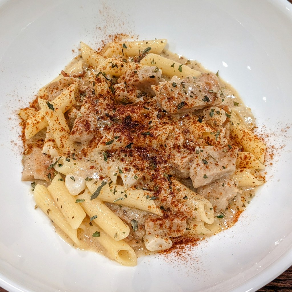 I’ve been cooking fully vegan for the last two weeks. This dish we’ve made before and it calls for cream; so I substituted soy milk. I chose poorly. 😥