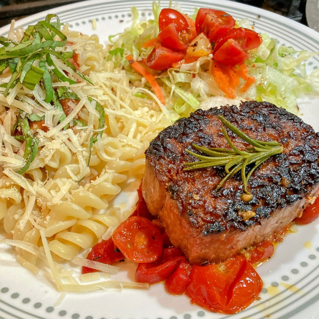 Together, this formed a well-rounded, vibrant plant-based meal that feels like a celebration on a random Tuesday night. The Juicy Marbles steak provided the hearty anchor, while the pasta and salad added layers of flavor, texture, and brightness.